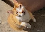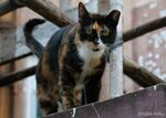ゲームやプラモデル、ファンシーな文房具など子ども向けの商品を扱う店です。日差しが強い夏場は通りに縁台を出して帽子を陳列しています。この縁台が好きな店の猫は、帽子の番を買って出て、お手伝いをしています。