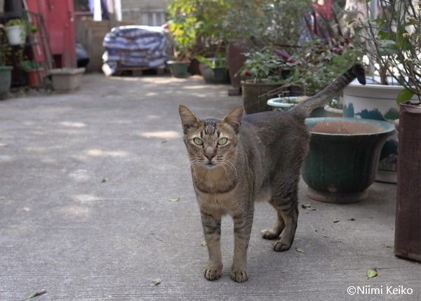坪洲龍母廟という寺院の裏手には猫が何匹かいますが、あまり仲良くなく、互いに距離を置いています。みんなオス猫だからでしょうか。