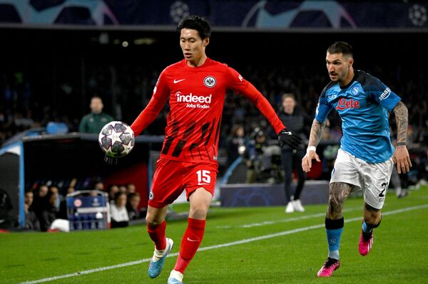 ドイツリーグ・フランクフルトからの退団が決まり、移籍先が注目の鎌田大地(写真:Maurizio Borsari/アフロ)