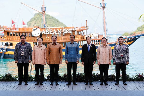 インドネシア東部ラブアンバジョで開催されたASEAN首脳会議に参加した各国首脳ら(2023年5月10日、写真:代表撮影/ロイター/アフロ)