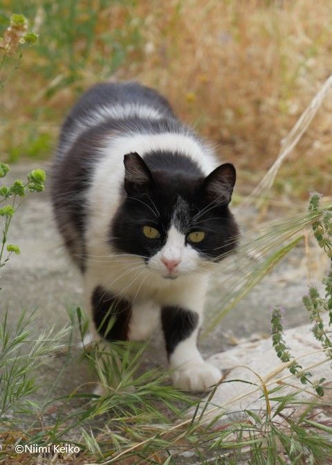 去っていく猫がいれば、こちらに近づいてくる猫もいます。この猫は、神秘的な目の色をしていました。