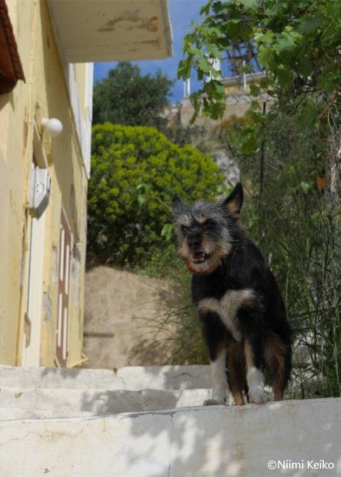 何かある気がして階段を上っていくと、犬がいました。アイコンタクトをとろうとしましたが、うまく交流ができません。帽子を取って挨拶だけして、階段を下りました。