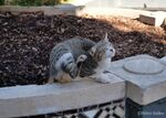 朝の散歩から帰ったサビ猫は、家に入れませんでした。家の人は、また眠ってしまったのでしょうか。
