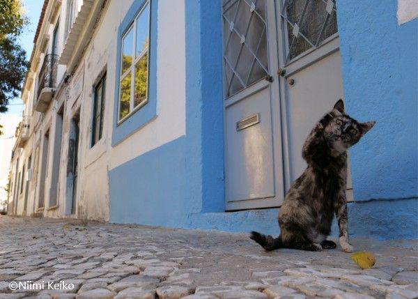 入り組んだ路地で車の上に乗っていた三毛猫に声をかけると、猫道を案内してくれました。三毛について、横向きにならないと通れないようなすごく細い道を行くと、城塞の上に出ました。ここで遊ぼうと三毛がでんぐり返しをしたとき、水平線上に立ち込めた雲の間から夕日が差しました。
