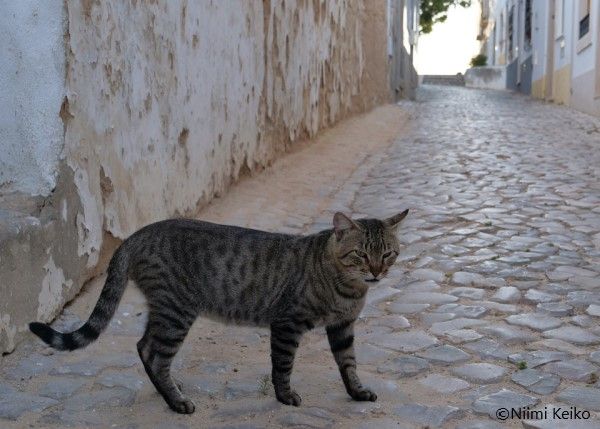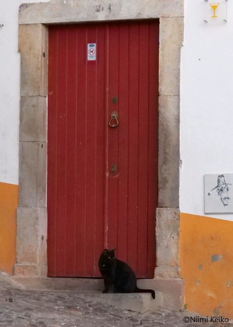 日の出前から散策をはじめましたが、6時を知らせる教会の鐘の音が響いても、まだあたりは薄暗いままでした。家の前にたたずむ黒猫は、鐘の音を聞いて、そろそろドアが開く時間だ、と戻ってきたようです。