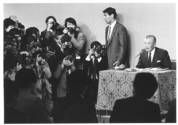 リクルート事件を受け、退陣を表明する竹下登首相(写真:AP/アフロ)