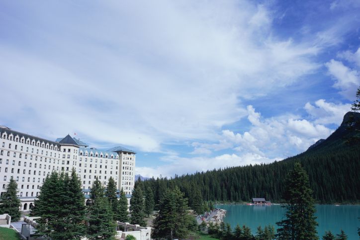 カナディアン・ロッキーでおすすめのホテルが、バンフ国立公園内にある「フェアモントシャトー レイクルイーズ」。1890年、登山家や自然愛好者のために平屋の丸太小屋が建てられたのが発祥のホテルです。