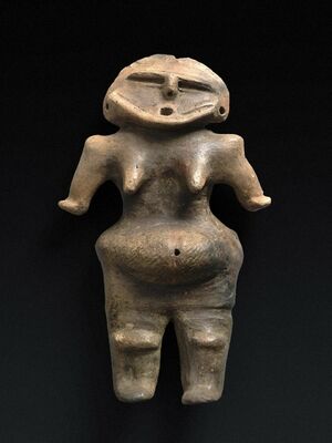 縄文時代、女性の性の特徴として乳房や腹部の膨張は大地の豊穣と関連するとして崇められた
