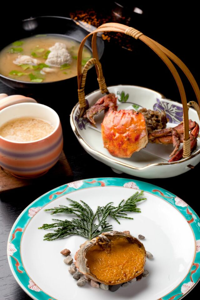 雄物川で獲れる川蟹(モクズガニ)の料理プランも名物だ。川蟹は濃厚な味わいと独特な風味が特徴だ。蟹餡、川蟹の唐揚げ、蟹みそ甲羅焼き、川蟹のつみれ汁をはじめ、様々な調理法による川蟹づくしを堪能できる。