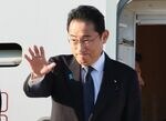 8月17日、ワシントンに向けて羽田空港を発つ前に手を振る岸田文雄首相(写真:つのだよしお/アフロ)