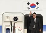 米国キャンプデービッドで開かれる日米韓首脳会談に出席するため、8月17日、ソウル空軍基地で飛行機に乗り込む尹錫悦大統領(写真:AP/アフロ)