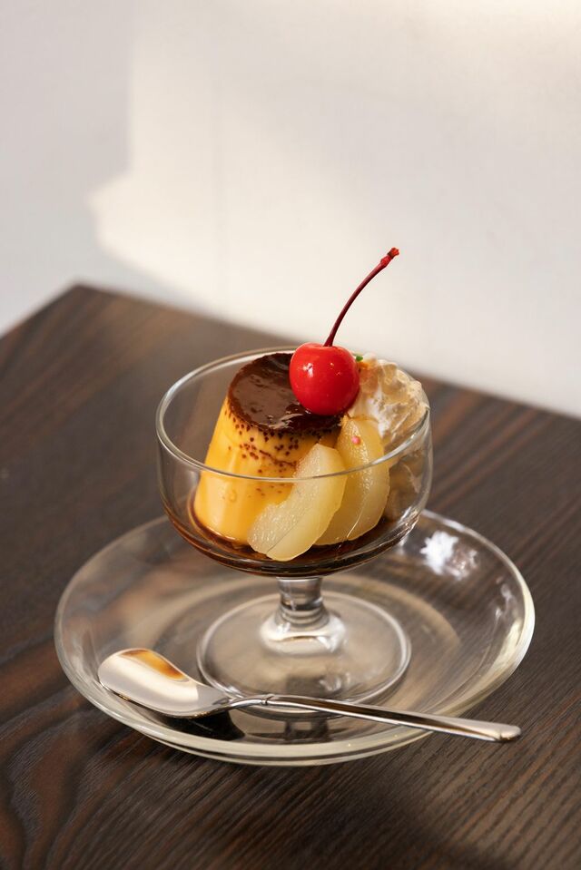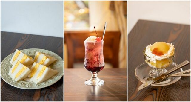 自家製プリンのほかにもエッグサンド、クリームソーダ、ピーチメルバなどのメニューがリニューアルされた