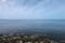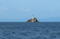 海岸沿いを走る国道338号の駐車場からはこのように見える。目のいい人なら島に白いもの(灯台)があることがわかるだろう、ぐらいだ。