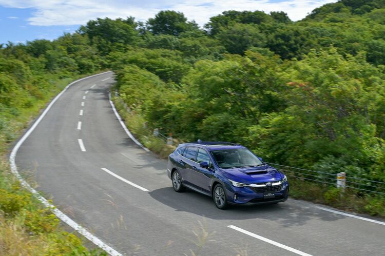 普段は一般道として用いられる大佐渡スカイラインには、何ヵ所か路面に深い段差のようなギャップがあるのだが、ここを高いスピードで強行突破すると、ボディのフロントがポーンと跳ね上げられるような傾向が見受けられた。ただし、それでステアリングがまるで利かなくなってしまうとか、危険な姿勢に陥るということは決してないが、ボディが大きくバウンシングしたことで前輪の接地感がかすかに薄れたことは事実。いっぽうで、私の記憶のなかにあるレヴォーグは、こんなときでも低い姿勢を保ったまま、執拗に路面を捉え続けていたはずだ。