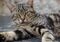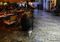 旧市街に入ると、さっそく猫を発見。カフェレストランの外に出されたテーブルの上、おかしな格好で体を乾かしていました。