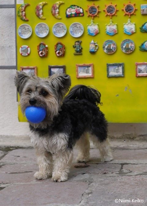ところが、わたしと目が合った瞬間、店の中からボールをくわえてきました。そうか、遊んでくれそうな人を物色していたのですか。犬には猫のように、お客さんを招こうという発想はないのかもしれません。