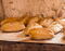 ブチャのベーカリー「パン屋の家」に並ぶ焼きたてのパン(2022年4月、ブチャ。著者撮影)
