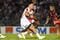 サモア戦前半、スローインする堀江(写真:共同通信社)