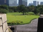 西ノ丸下(皇居外苑)から見た丸ノ内のビル群。家康が入った頃は丸ノ内あたりまで入江が入り込んでいた