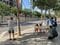 背後で激しく解体されているのは、Spotifyカンプ・ノウの南側。工事は2023年6月から始まっていたが、こんなにわかりやすく壊し始めたのはごく最近のことのようで(撮影は7月4日)、バルセロナ市民が興味深そうに現場を眺めていた。