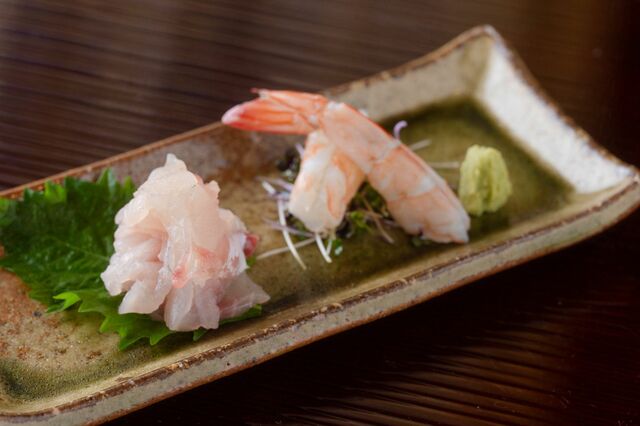 次は、近江八幡で伊吹山の水で養殖されている近江海老、そして湖魚の造り。