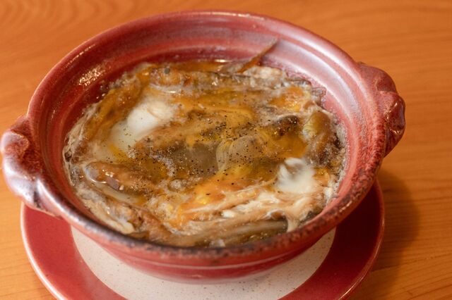 イサザと焼きナス、ごぼうの柳川風。イサザはハゼの一種で、琵琶湖の固有種で希少な魚