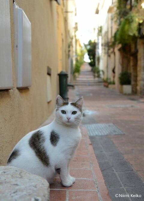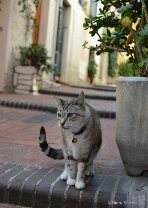 猫たちが活動する朝の時間は、出勤する人々の往来もあります。邪魔にならないように気を使っているような後ろ姿でした。