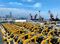 10月18日、中国江蘇省連雲港市の埠頭では、多数の掘削機が出荷の準備を整えていた(写真:CFOTO/共同通信イメージズ)