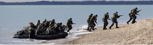 英国で訓練中のウクライナ軍海兵隊と潜入用ボート