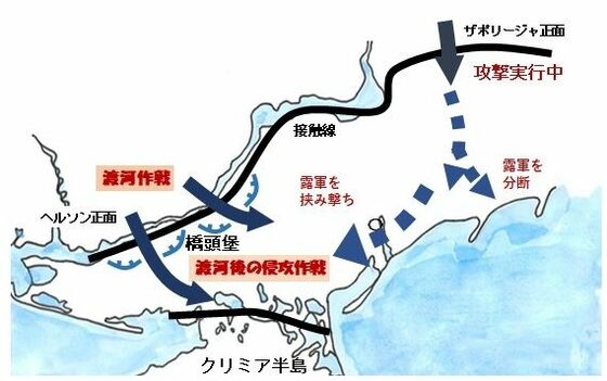 ウクライナ軍の数個旅団級部隊の渡河が達成できれば、その後の作戦は容易になる。