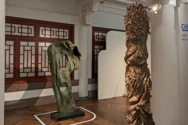 象徴的なのが、勅使河原蒼風の作品。さらに、チェーンソーで作品をつくる戸谷成雄が2022年にブロンズで作った『森』も同じ考えのもとで展示されている。