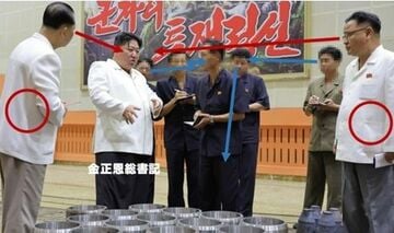 側近と工場管理者などの目線の違いがなぜ現れたのか。本来であれば、全員が金正恩氏を見ているはずであるが、この写真ではそうではない。