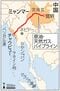 中国・昆明とミャンマーのチャウピューを結ぶ原油・天然ガスパイプラインのルート(共同通信社)