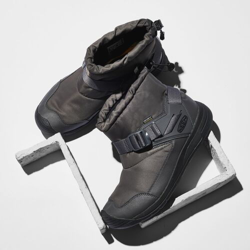 革新的デザインのプロダクトを生み出し続けてきたキーンからも、脱ぎ履きが容易な冬仕様のスリップオンブーツが名乗りを上げる。リサイクルPETを使用した保温素材と、完全防水でありながら、高い透湿性と耐久性を実現する防水透湿素材を組み合わせたアッパーは、足の自然な動きにしなやかにフィットし、寒さの中でも快適な履き心地を約束する。