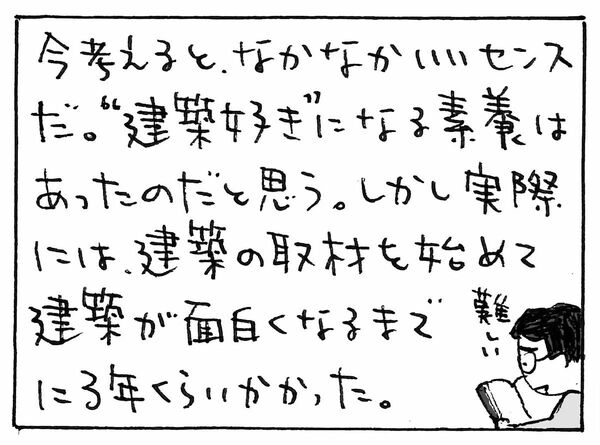 【まえがきのまんが】建築を楽しめるようになる早道は教養よりミーハー精神 4日間で「建築っておもしろい」とわかる本 宮沢 洋 著者フォロー フォロー中 建設・不動産 2023.12.24(日) シェア5 Tweet 1 2 3 4 5 6 7 8 ギャラリーページへ ギャラリーページへ ギャラリーページへ シェア5 Tweet あわせてお読みください 日本の現代建築に最も影響を与えた建築家は誰?コンドルより重要な人物とは 存在感の大きいレーモンド・スクール、レーモンドは多数のモダニズム建築を日本に残した 宮沢 洋 関東大震災で帝国ホテルが無事だったのはなぜ?「ライトの耐震設計」は神話か 博物館明治村でライト館竣工100年の特別展「東洋の宝石」が開幕 宮沢 洋 「水と光に包まれる」幸せな体験ができる水族館ベスト3 「建築」を知れば「水族館」が2倍楽しくなる 後編 宮沢 洋 知られざる安藤忠雄建築、驚きとため息の連続 松山市のホテル「青凪」は本当にすごい! 宮沢 洋 “恐怖のエスカレーター”作った理由と撤去した理由 池袋建築巡礼09-2(東京芸術劇場) 宮沢 洋 本日の新着 一覧 「広島県初の女性知事」に願う、男女格差を指摘せず男性年長者に逆らわぬ女性しか認められない社会にだけはどうか… 【どーしょーるん】「男は仕事、女は仕事と家事」の考え根強い広島、若い女性はどんどん他地域へ、この状況を女性知事は変えてくれるのか 宮崎 園子 毛沢東や鄧小平の時代とは違う、強大国となった習近平時代の中国は「台湾」で妥協しない、その虎の尾をなぜ安易に… 【舛添直言】商売でやっている保守系雑誌の真似をして、威勢のいいことを言うのは政治家の仕事じゃない 舛添 要一 年間8万人を超える失踪者はどのように生きているのか?彼らの人生が映し出す死ぬよりも逃げるという選択肢 【著者に聞く】『ルポ失踪』の松本祐貴が語る、失踪したそれぞれの理由とその後の人生 長野 光 | 松本 祐貴 【高齢者連れ去り・江東区②】任意同行した警察署から消え、区側は一切の面会を拒否…虐待ないのに、なぜ? フロントラインプレス | 西岡 千史 科学技術の現場 バックナンバー 一覧 安藤忠雄設計の「直島新美術館」オープン、安藤氏9番⽬の「ヴァレーギャラリー」以来3年ぶりの新作 宮沢 洋 西池袋にある“ぼやっとした”領域、大手デベロッパーが関わらない街づくりが生きるニシイケバレイ 宮沢 洋 なぜ旧宅を壊して建て替えた?無名の建築家・岡秀世とは?静かな住宅街で静かな存在感を放つ熊谷守一美術館 宮沢 洋 【建築視点の万博】若手建築家20組を全紹介(東側エリア):注目株が輝き、冴えていた藤本プロデューサーの差配 宮沢 洋 【建築視点の万博】若手建築家20組を全紹介(海側エリア):素材と構成に注目、残念石からグネグネ樹脂壁まで 宮沢 洋 【建築視点の万博】若手建築家20組を全紹介(西側エリア):学会賞受賞者2組らが新たな屋根を競う 宮沢 洋 Sponsored フォロー機能について フォロー機能とは、指定した著者の新着記事の通知を受け取れる機能です。 フォローした著者の新着記事があるとヘッダー(ページ上部)のフォロー記事アイコンに赤丸で通知されます。 フォローした著者の一覧はマイページで確認できます。 ※フォロー機能は無料会員と有料会員の方のみ使用可能な機能です。 設定方法 記事ページのタイトル下にある「フォローする」アイコンをクリックするとその記事の著者をフォローできます。 確認方法 フォロー中の著者を確認したい場合、ヘッダーのマイページアイコンからマイページを開くことで確認できます。 解除方法 フォローを解除する際は、マイページのフォロー中の著者一覧から「フォロー中」アイコンをクリック、または解除したい著者の記事を開き、タイトル下にある「フォロー中」アイコンをクリックすることで解除できます。 ご登録 ログイン