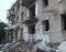 砲撃の被害を受けた、フリアポレの集合住宅。地上階はいつ砲弾でやられるかわからない(筆者撮影)