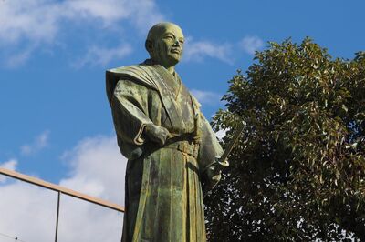 赤穂城に立つ大石内蔵助像。Z世代には時代劇を見ずに育った者も多い