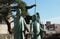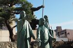 北ノ庄城跡に立つ三姉妹像。いちばん手前が江