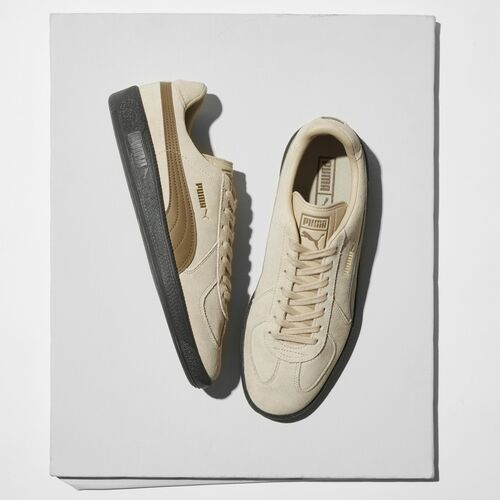 最後は本稿のテーマ“定番”という轍からは少々外れる変化球を。“アーミー”と冠したモデル名からも分かるように、元ネタは1970年代に西ドイツ軍が屋内演習用シューズとして開発し、1994年まで制式採用されていた、通称「ジャーマントレーナー」。当時の製造工場が、プーマのシューズ生産も担っていたという歴史的事実に基づき、アーカイブから復活を遂げた。