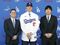 ドジャースの入団記者会見で、背番号「17」のユニホームを着る大谷翔平。左は代理人ネズ・バレロ氏、右は通訳の水原一平さん(2023年12月14日、写真:共同通信社)