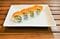 カニカマ、キュウリ、アボカド、トビコを使ったカリフォルニアロール