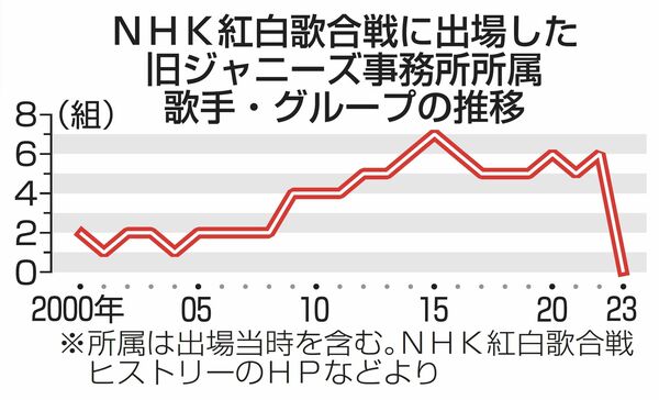 特に、旧ジャニーズ事務所のタレントは紅白歌合戦を支える存在でした。性加害問題を受けて2023年は1人も出場しませんが、旧ジャニーズタレントの紅白初出場は1965年のジャニーズでした。その後、フォーリーブス、郷ひろみ、田原俊彦、近藤真彦、シブがき隊、少年隊、光GENJI、SMAP、TOKIO、嵐、関ジャニ∞、Sexy Zone、V6、King & Prince、SixTONES、Snow Manなど多くの旧ジャニーズタレントが出場してきました。視聴率を稼ぐために旧ジャニーズタレントの人気に頼ろうとしたとの指摘もあります。