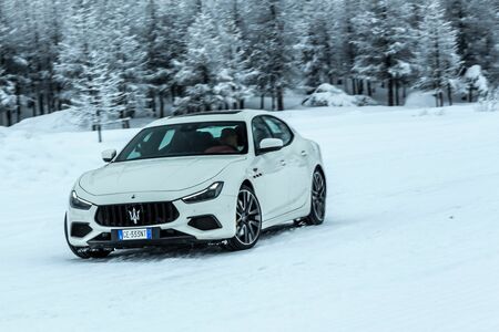 話を雪上試乗会の話に戻せば、ギブリ334ウルティマは、V8エンジン搭載のギブリ・トロフェオをベースにしながら、4ドア・モデルとして史上最速の最高速度:334km/hを達成した限定車。そう聞くと、「きっとものすごい改造を施したに違いない」と思われるかもしれないが、実はトランクリッドに小さなリップ(スポイラー)を設けたのが実質的な差で、性能向上に結びつくようなモディファイはほとんど行われていない。ちなみに、スタンダードなギブリ・トロフェオの最高速度は326km/h。つまり、ベースモデルからして極めて高いパフォーマンスを備えていたことになる。なお、ボディは光の加減によって青にも緑にも見える専用のシャー・ディ・ペルシア(ペルシャ王の意味)にペイントされ、世界で103台が限定販売される。