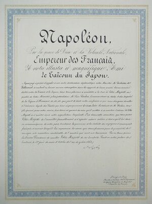 1863年10月23日付、ロッシュを駐日フランス公使に任命する旨が記されたナポレオン3世の信任状 ワールドイメージング, CC BY-SA 3.0, via Wikimedia Commons