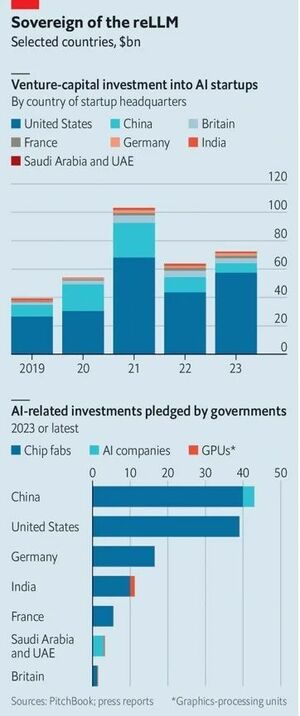 両国政府がこの1年間に約束したAI投資の金額はそれぞれ400億~500億ドルに上る。