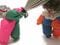 「こーんにちはー」のポーズを決める「錦鯉」の長谷川雅紀と相方の渡辺隆(写真:共同通信社)