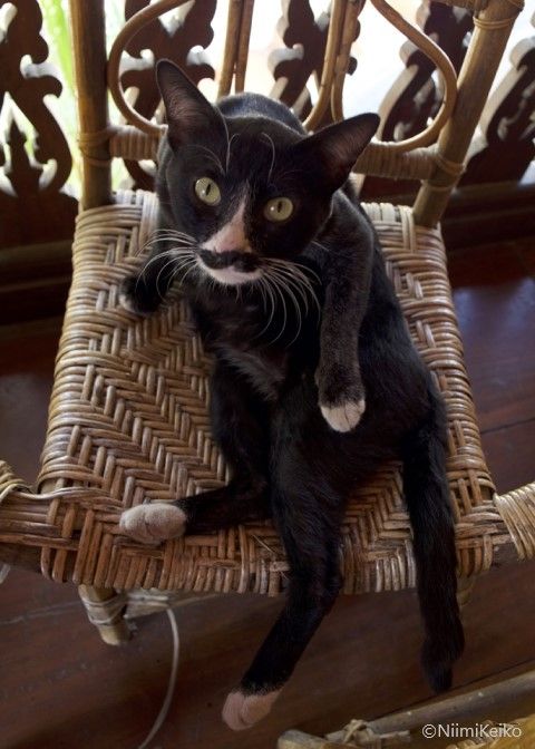 私の「黒猫白猫」のベストワンは、ラオスのルアンパバーンにある寺院で出会った猫です。顔の柄がひょうきんに見え、写真を見るたびに楽しい気持ちにさせてくれます。猫自身は、自分のことをダンディだと思っているところがまた笑えます。