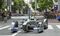 東京・六本木のけやき坂でデモ走行するフォーミュラEのマシン(2015年8月、写真:共同通信社)