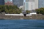 写真7は、吹上の土塁と鉢巻石垣を半蔵濠ごしに望んだショット。人間の視角に近いという50mmの特徴を活かして、江戸城の雄大さを無理なく写し取ってみた。ただ、やはり絵的に平凡でインパクトに欠ける感は否めない。