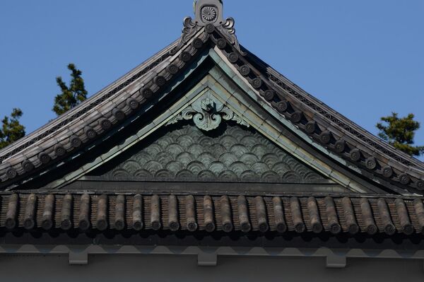 写真4:江戸城の櫓や渡櫓門は破風に銅版を貼って青海波紋を入れるという、セレブでアーバンな作りが特徴だ。桜田門の破風をズームの望遠300mm側でアップにしてみた